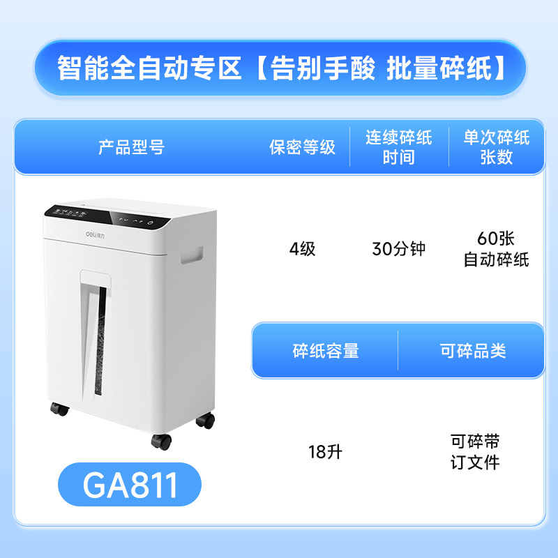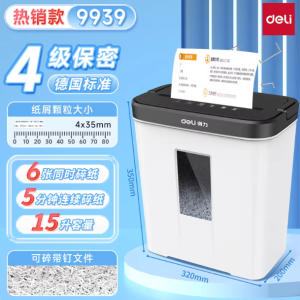得力9939碎纸机办公室专用大容量全自动家用小型电动大功率商用桌面纸张文件迷你粉碎机5级保密碾碎机光盘卡